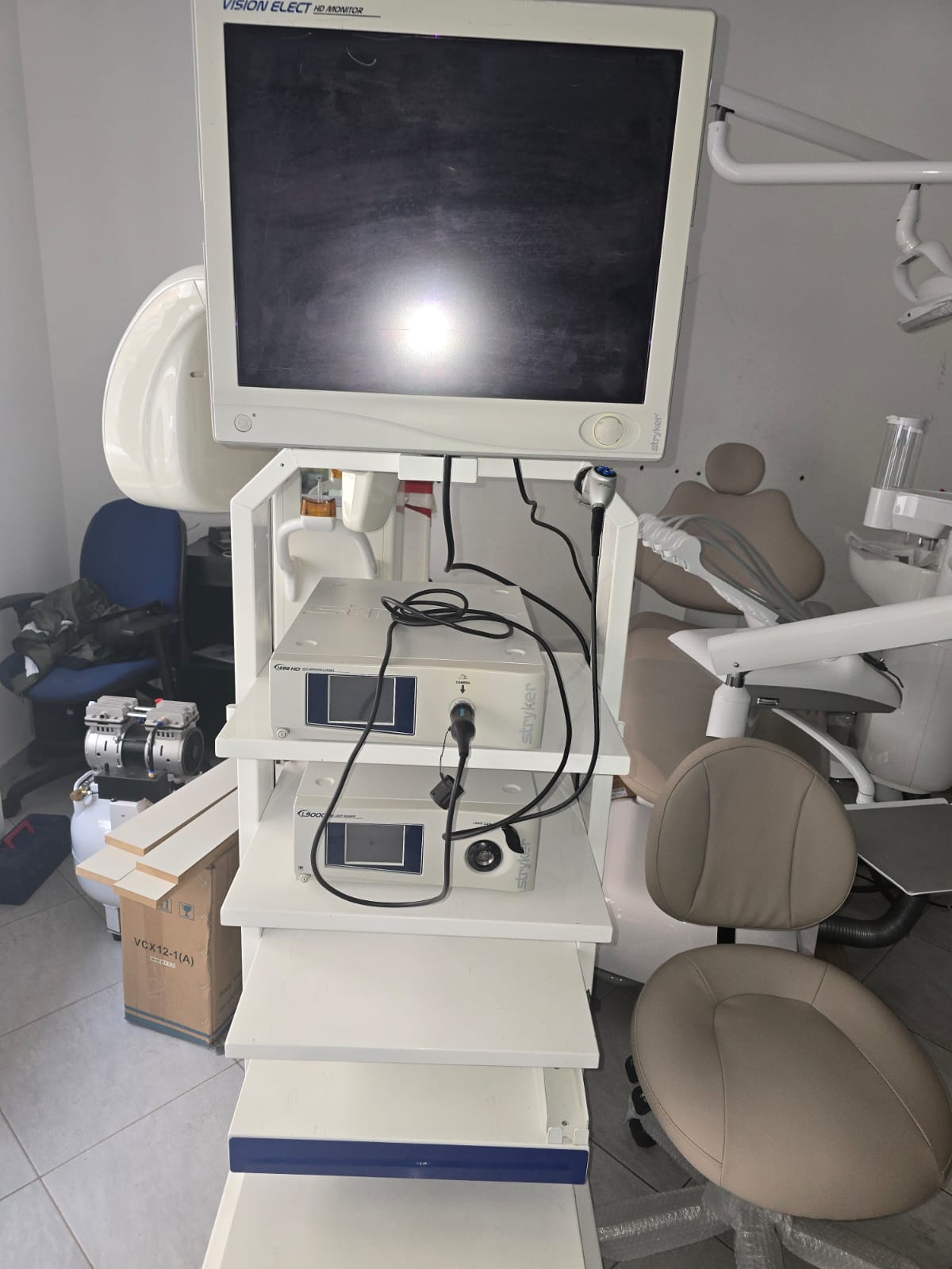 Système de vidéo-endoscopie STRYKER Vision Elect HD avec moniteur médical haute définition, caméra endoscopique et unité de contrôle. Conçu pour des diagnostics précis et une imagerie médicale fiable.